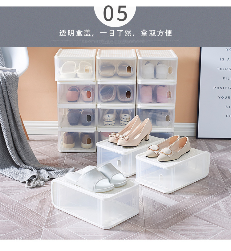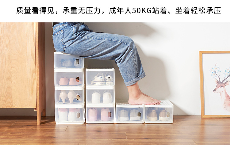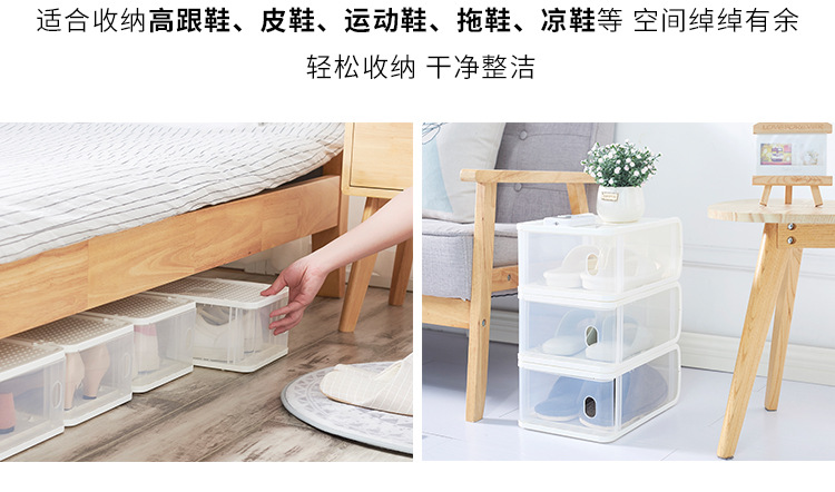 厂家现货批发创意日式塑料鞋盒可叠加防尘加厚鞋盒出口透明收纳盒