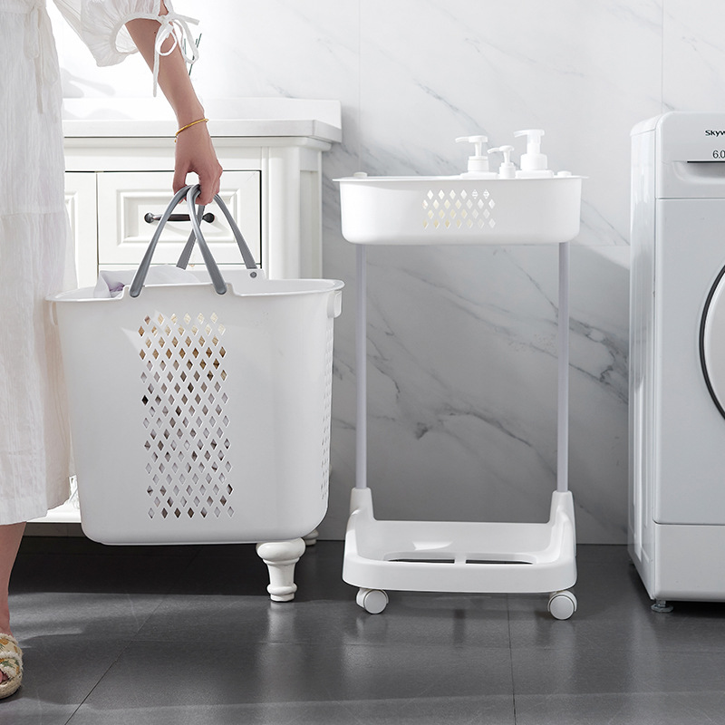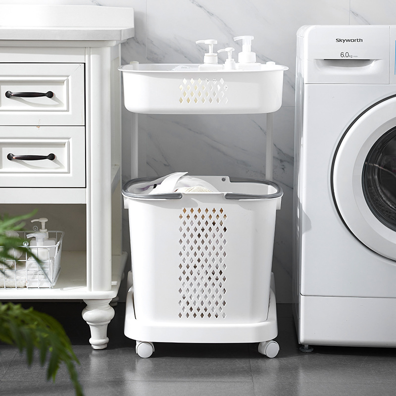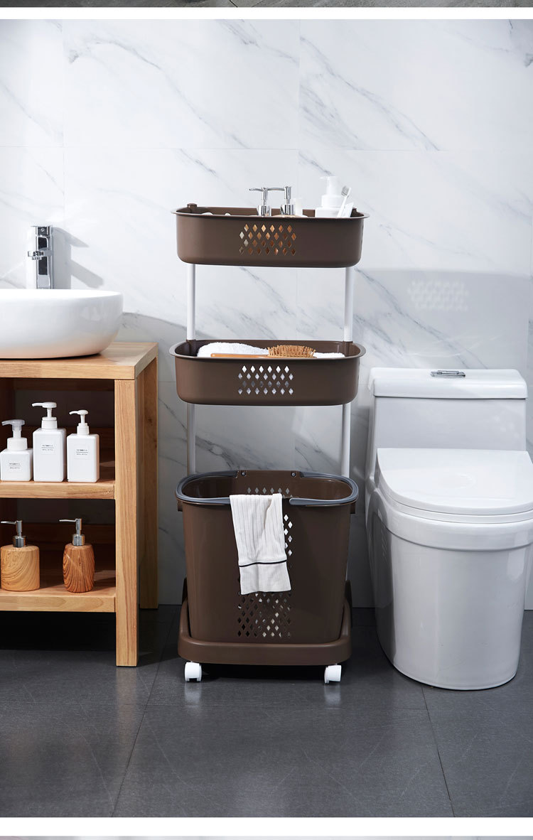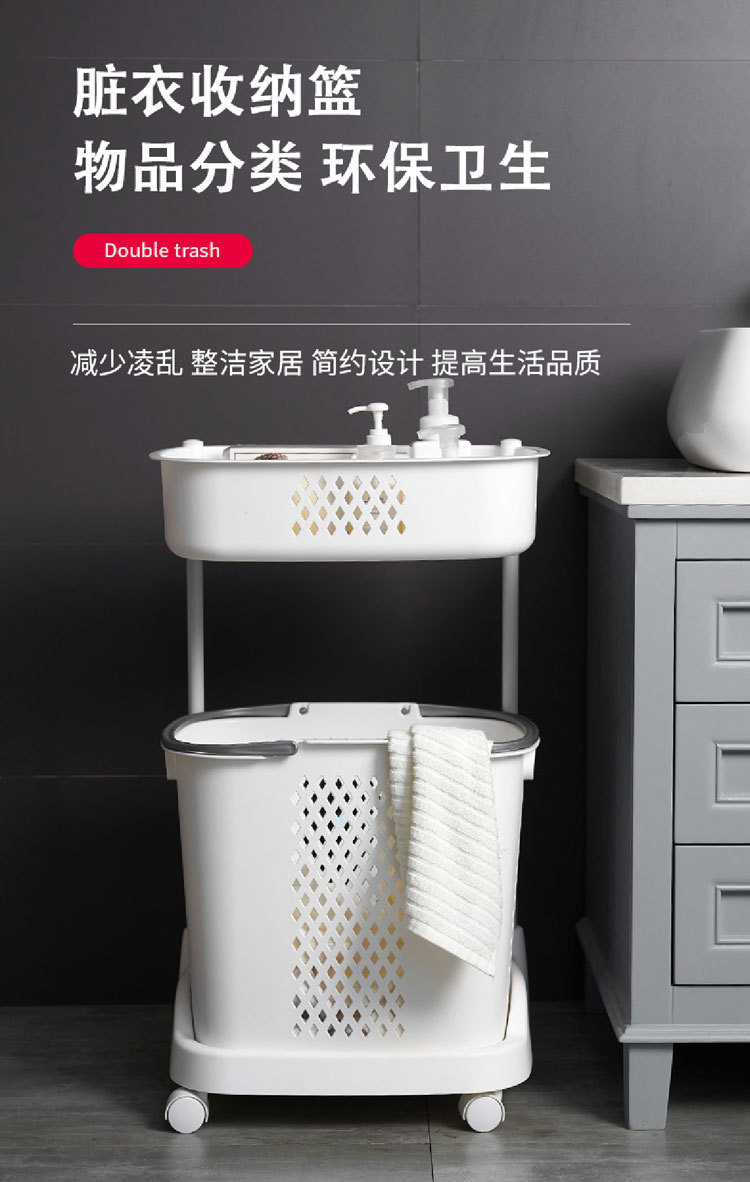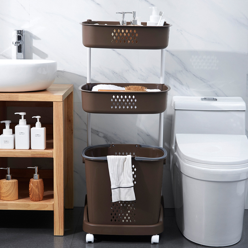 厂家直销大号三层脏衣篮 浴室塑料脏衣收纳篮 多功能带滑轮储物篮